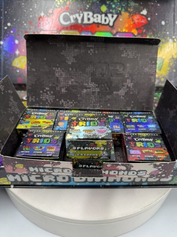 Crybaby Trio Wax is a premium cannabis concentrate featuring three distinct wax varieties in one package. Each strain offers unique flavor notes, terpene profiles, and effects — allowing users to explore diverse experiences without needing multiple products.